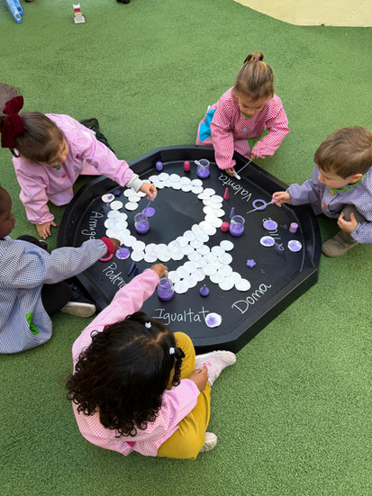 A la llar d’infants ho celebrem d’una manera adaptada a l’edat dels infants, a través del joc, la descoberta i les emocions. El color lila, símbol d’aquesta jornada, esdevé el fil conductor de les nostres activitats: omplim els espais amb tons liles, fem propostes artístiques amb pintura, teles i materials sensorials, i convidem els infants a experimentar lliurement.