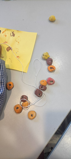En aquesta activitat, els nens i nenes d’I5 elaboraran un collaret de fang utilitzant diferents colors. A través d’aquesta proposta es treballarà la psicomotricitat fina, ja que els infants hauran de manipular el fang, fer boletes i enfilar-les amb cura.